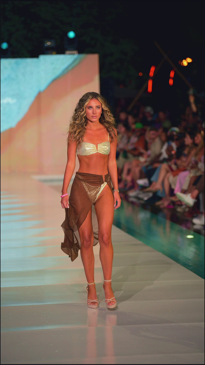 Get ready to dazzle on the beach with our Rachel Bikini Bottom! Made from lurex fabric with gold metal detailing, it's the perfect match to our Rachel Triangle Top. Whether you're lounging by the pool or catching some waves, this bikini adds a touch of sparkle to your beach look.